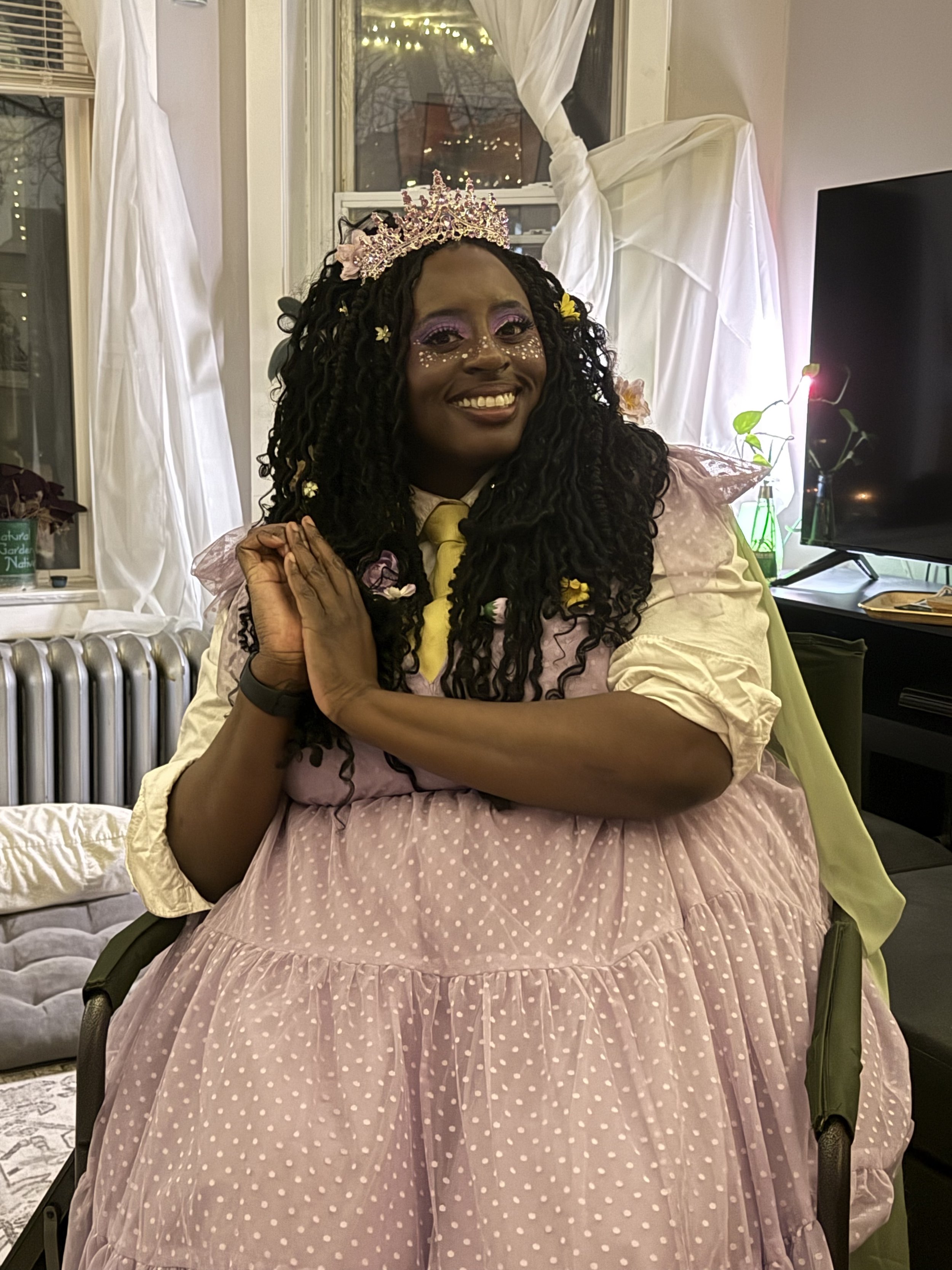 I’m not sure how long they were in New Orleans, but I know it was more than five years. Certainly enough time to miss the city dearly during Mardi Gras. They invited us, and another old New Orleans friend over for a Mardi Gras get together so we could eat some Popeyes and some red beans and reminisce about the city as Carnival was coming to an end. Kechi and I hit up Popeyes and headed over for a low-key evening of companionship, drinks, and good food. Kechi and I both dressed up—although my outfit was a bit less costume-y than I usually am on Mardi Gras. I just wore a dusting of sparkly snowflakes like freckles across the bridge of my nose and borrowed Kechi’s rainbow sweater while she was fully glammed-up after reshooting an insert as Helenoir Cosmopolitan, one of her characters from her show (Su)Pervirgin.